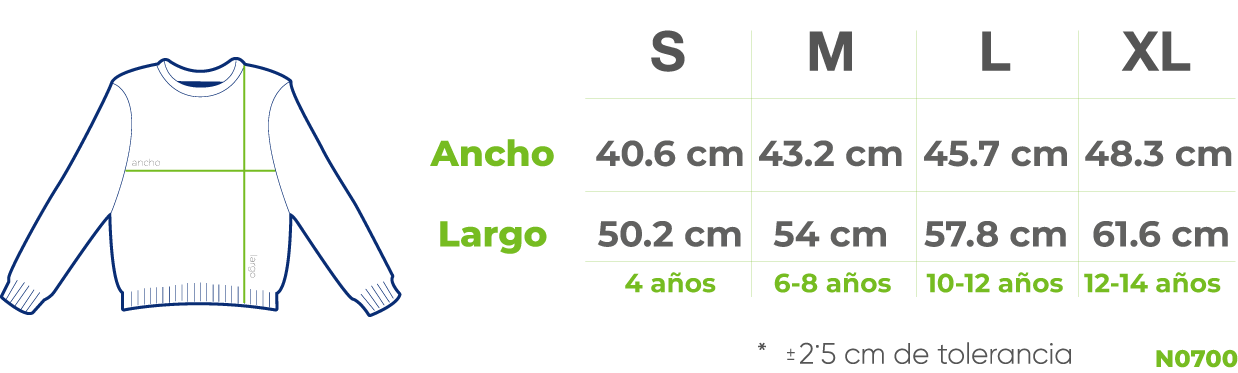 N0700 Sudadera cuello redondo niño Unisex (4-14 años)