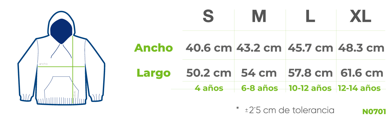 N0701 Sudadera c/Capucha y Cangurera Infantil Unisex (4-14 años)